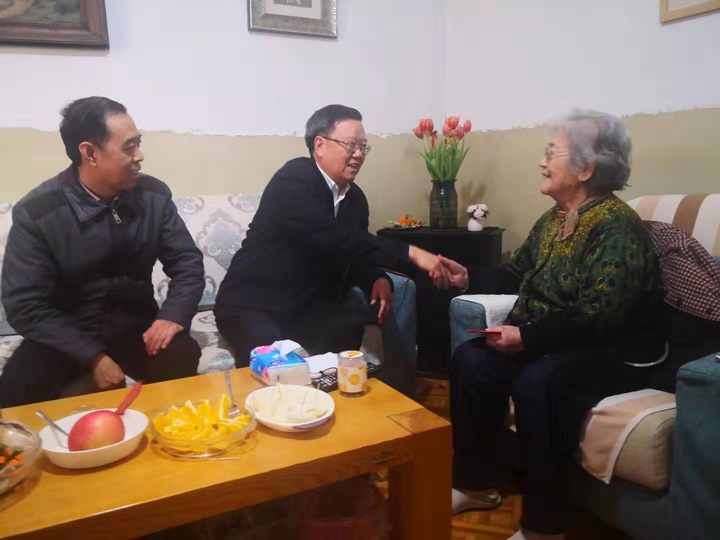91歲高齡離休干部老黨員張英家里,李光同志代表省國資委黨委送節(jié)日的問候和誠摯的祝福,并送去了慰問金和慰問品。