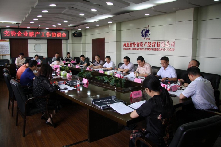 李光副主任介紹了省國資委劣勢企業(yè)破產(chǎn)退出有關(guān)情況。會議聽取了我公司擬破產(chǎn)退出企業(yè)工作情況及退出思路等有關(guān)情況匯報(bào),對如何推進(jìn)省外貿(mào)資產(chǎn)公司所屬劣勢企業(yè)破產(chǎn)具體工作進(jìn)行了研究;省高院通報(bào)了我省企業(yè)破產(chǎn)工作的總體情況,石家莊市中院通報(bào)了破產(chǎn)案件審理有關(guān)情況。會議原則同意集中管轄受理我公司破產(chǎn)案件,并建立簡化程序、加快推進(jìn)、統(tǒng)籌協(xié)調(diào)的聯(lián)動工作機(jī)制。