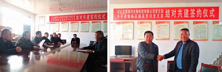為深入貫徹落實(shí)“基層黨建質(zhì)量提升年”活動(dòng)部署,進(jìn)一步發(fā)揮黨建引領(lǐng)作用,不斷探索基層高質(zhì)量黨建工作新模式,形成“優(yōu)勢(shì)資源互補(bǔ),相互促進(jìn)提高”的工作新格局,2020年11月6日,河北藍(lán)翼海洋生物科技有限公司黨支部與樂(lè)亭縣姜各莊鎮(zhèn)前營(yíng)村黨支部在前營(yíng)村黨員活動(dòng)室舉行了結(jié)對(duì)共建簽約儀式。