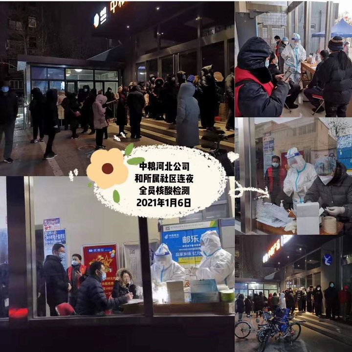 上級要求,制定防控方案,明確防控措施,嚴(yán)格執(zhí)行特殊情況外出審批備案制度和24小時值班值守制度,毫不松懈抓好佩戴口罩、測溫掃碼和辦公區(qū)域消殺工作,全方位無死角切斷疫情傳播途徑。公司總部值班值守人員堅持24小時堅守工作崗位,做好應(yīng)急事務(wù)處理。各駐石企業(yè)嚴(yán)格按照上級安排部署落實疫情防控要求,積極配合街道和社區(qū)做好核酸檢測工作,嚴(yán)格執(zhí)行疫情防控、核酸檢測日報告制度。在落實防控要求的基礎(chǔ)上,公司總部和東方國際值守人員協(xié)助配合轄區(qū)組織完成對飛翼路8號院住戶及值守員工等近500人的核酸檢測工作;中糧河北和所屬社區(qū)連夜組織全員核酸檢測工作。