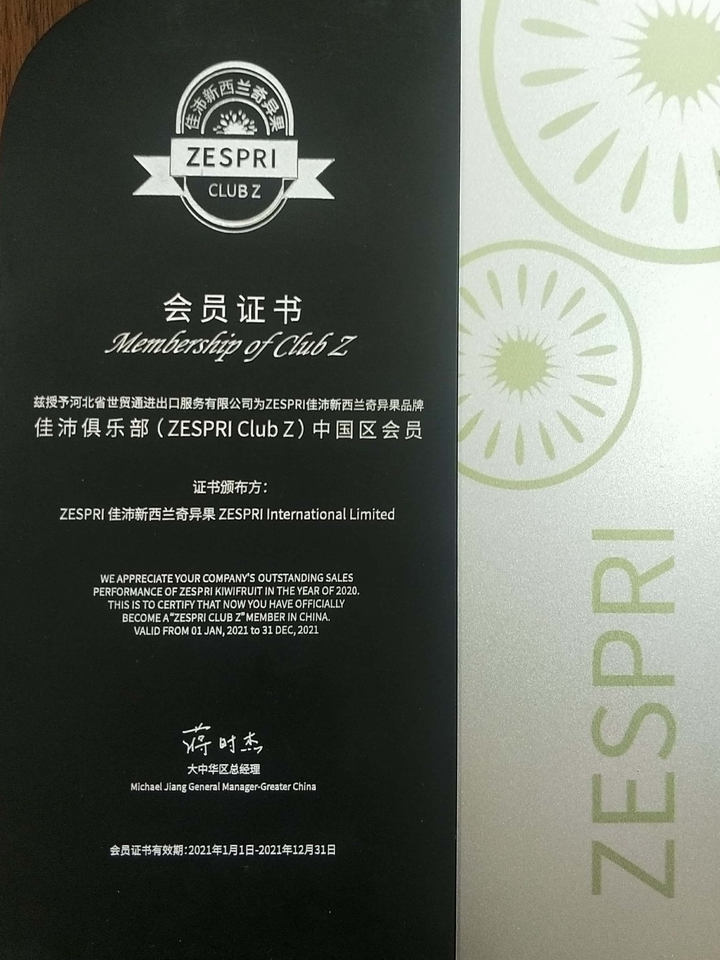 經(jīng)過與新西蘭佳沛、上海佳農(nóng)多輪的考察、論證和談判,河北省世貿(mào)通進(jìn)出口服務(wù)有限公司于近日取得新西蘭“佳沛”奇異果Club-z會(huì)員資質(zhì),獲得上海佳農(nóng)公司河北省唯一指定代理商。
