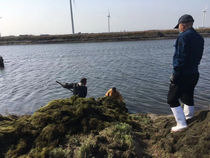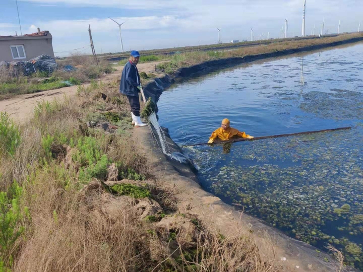 其次,控制水草。水草瘋長(zhǎng)是海參養(yǎng)殖的大敵,尤其在高溫期,死亡的水草會(huì)導(dǎo)致圈底大面積缺氧、硫化氫中毒、氨氮超標(biāo)、漂參死亡等現(xiàn)象。因此,控草最好從低溫開(kāi)始,越早越好。為此,河北藍(lán)翼從開(kāi)春后就開(kāi)始了撈草大戰(zhàn),公司班子成員全都投入到勞動(dòng)之中,為職工做出表率。
