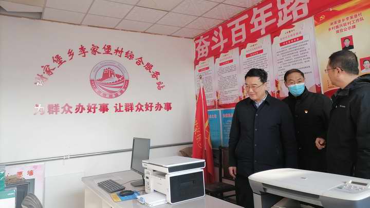 隨后,張?jiān)懺?/span>張世卿和馬麗屏的陪同下,參觀了新設(shè)立的村級(jí)綜合服務(wù)站,聽(tīng)取了村黨支部書(shū)記劉秀明關(guān)于綜合服務(wù)站的建設(shè)情況。張?jiān)懸篑v村工作隊(duì)要利用好綜合服務(wù)站平臺(tái),強(qiáng)化“為群眾辦好事、讓群眾好辦事”服務(wù)意識(shí),推動(dòng)黨史學(xué)習(xí)教育活動(dòng)再深入,提升為民辦事服務(wù)水平。