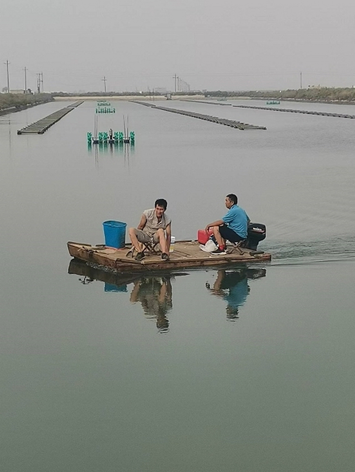 養(yǎng)參先養(yǎng)底。為提高池底氧化性,除黑除臭,為海參出爬攝食創(chuàng)造一個良好的底質環(huán)境,同志們按部就班地投撒底改產品。
