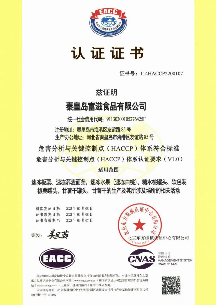 秦皇島富滋食品有限公司順利通過“HACCP”食品安全保證體系認證