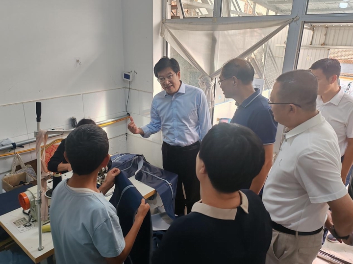 王建軍一行實地省外貿(mào)資產(chǎn)公司幫扶建設(shè)的李家堡箱包廠項目,了解項目幫扶成果,現(xiàn)場詳細(xì)詢問了箱包廠的投產(chǎn)時間、項目資金來源、經(jīng)營狀況和村民工資收入等情況。當(dāng)?shù)弥壳跋浒?lián)合體的就業(yè)人數(shù)已達(dá)90余人,工人月收入達(dá)到1500余元-4000余元時,王局長高興地說:箱包產(chǎn)業(yè)項目實實在在地帶動了更多的脫貧群眾就近就業(yè),不僅提高了村民家庭收入,同時也增加了村集體收益,體現(xiàn)了經(jīng)濟效益和社會效益雙豐收,為鄉(xiāng)村振興產(chǎn)業(yè)項目發(fā)展奠定了堅實基礎(chǔ)。