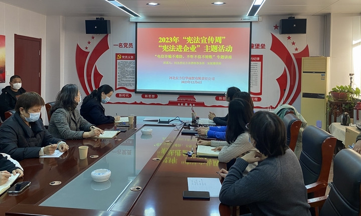 為深入學習貫徹習近平新時代中國特色社會主義思想,大力弘揚憲法精神,進一步增強干部職工的憲法意識,12月6日,東方信華按照省外貿(mào)資產(chǎn)公司安排部署圍繞“大力弘揚憲法精神,建設(shè)社會主義法治文化”主題,組織開展了“憲法進企業(yè)”活動,邀請公司常年法律顧問河北世紀方舟律師事務所宋妮珊律師開展專題講座。
