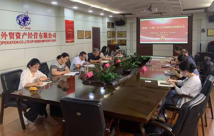 按照省外貿(mào)資產(chǎn)公司黨委統(tǒng)一部署,9月9日,省外貿(mào)資產(chǎn)公司黨委常委、紀(jì)委書記劉利成向分管企業(yè)和部室宣講黨的二十屆三中全會(huì)精神。東方信華領(lǐng)導(dǎo)班子成員、人力資源部(黨委組織部)和紀(jì)委工作機(jī)構(gòu)中層管理人員參加會(huì)議。